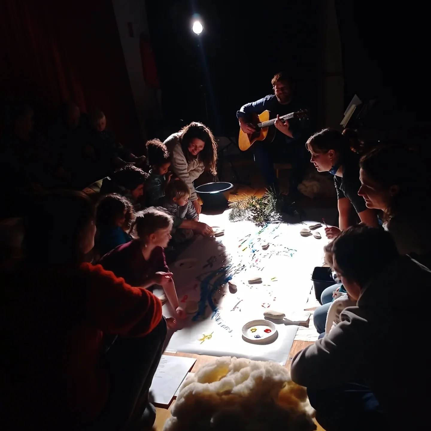 At the heart of these projects, I create paintings live. I alternate between improvisation and pre-written and rehearsed images, using different techniques depending on the project and context: backdrops, drawings filmed and projected in real time, painting on paper installations…